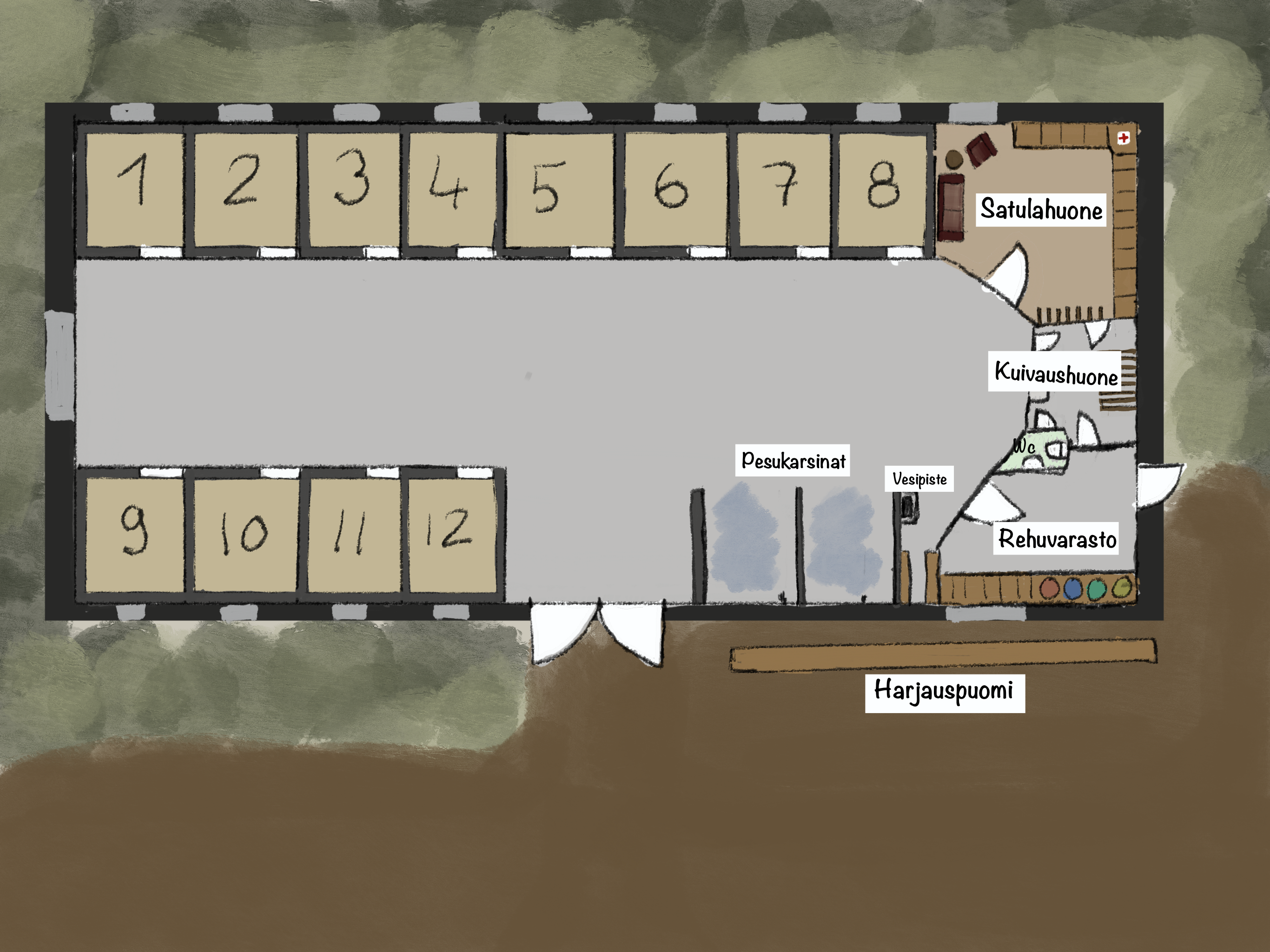Vuonna 2024 vanha 1980-luvulla rakennettu pihattotalli uudistettiin aktiivipihatoksi, joka sijaitsee metsä- ja laidunalueen laidalla. Alue on jaettu tammapihattoon (max 8 tammaa/varsaa) ja orien ja ruunien pihattoon (max 2-4 hevosta). Molemmat pihatot on varustettu automaattisilla ruokintajärjestelmillä, tilavilla makuuhalleilla, polkureiteillä ja juomapaikoilla, jotka rohkaisevat hevosten luonnollista liikkumista.
